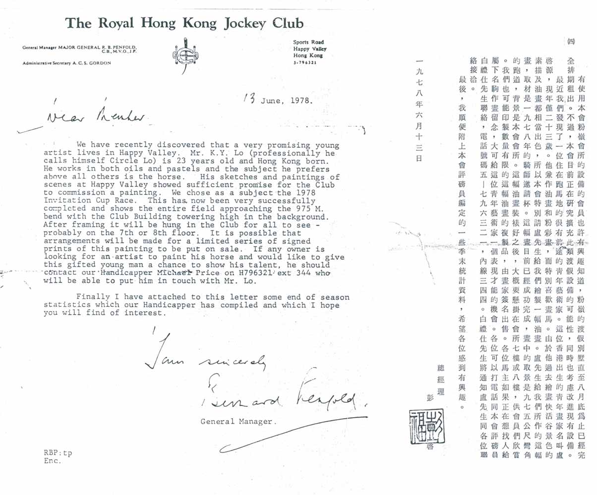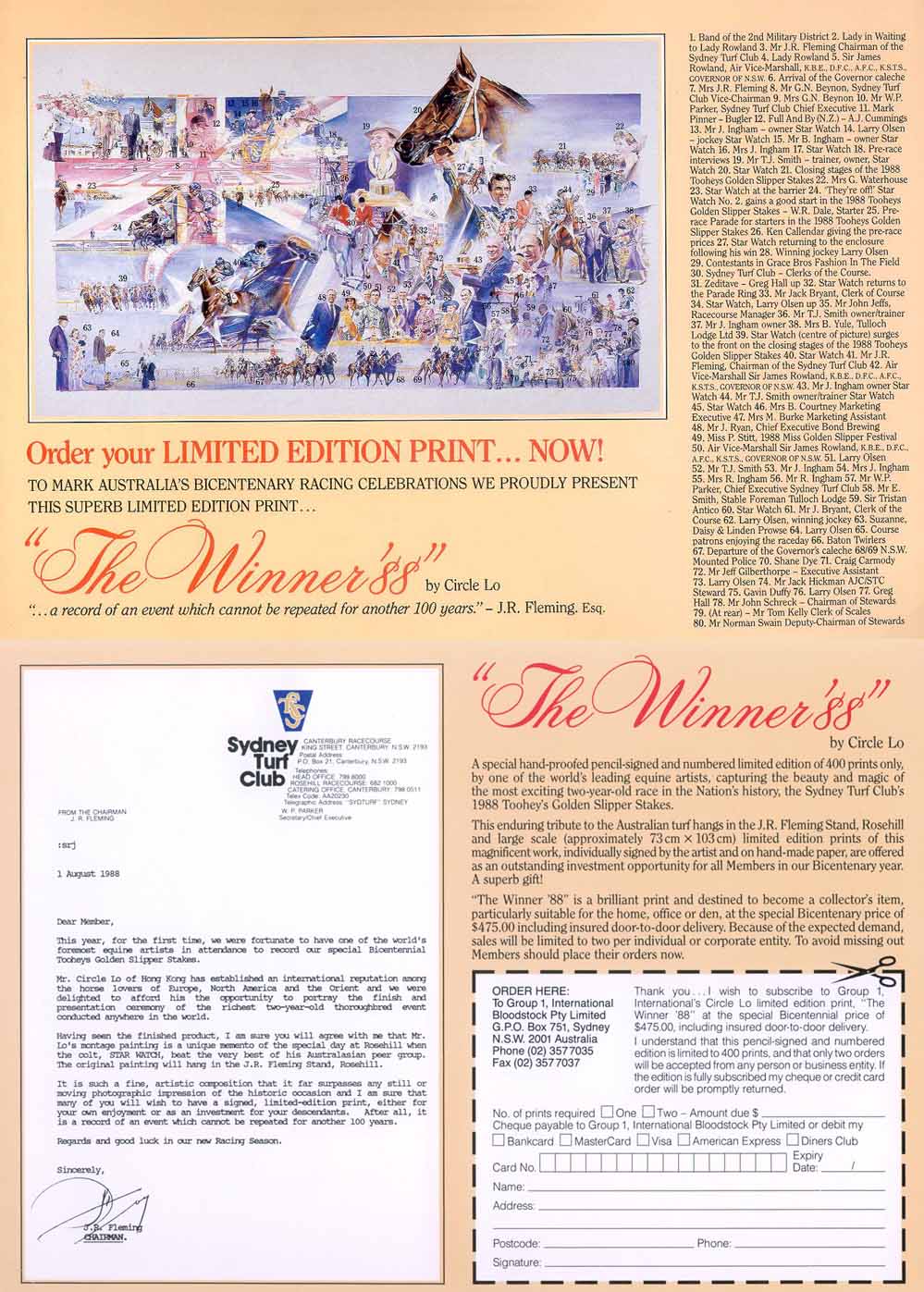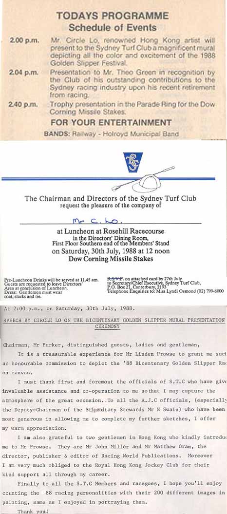 1988-08-01 Golden Slipper Oil Painting Index 金拖鞋大赛油畫名冊, S.T.C. CHAIRMAN'S LETTER,《悉尼馬會主席信》