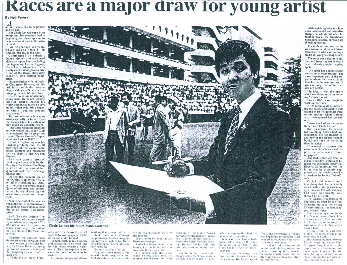 1983-11-05 Races are a Major Draw for Young Artist 賽馬畫家, HONGKONG STANDARD,《英文虎報》