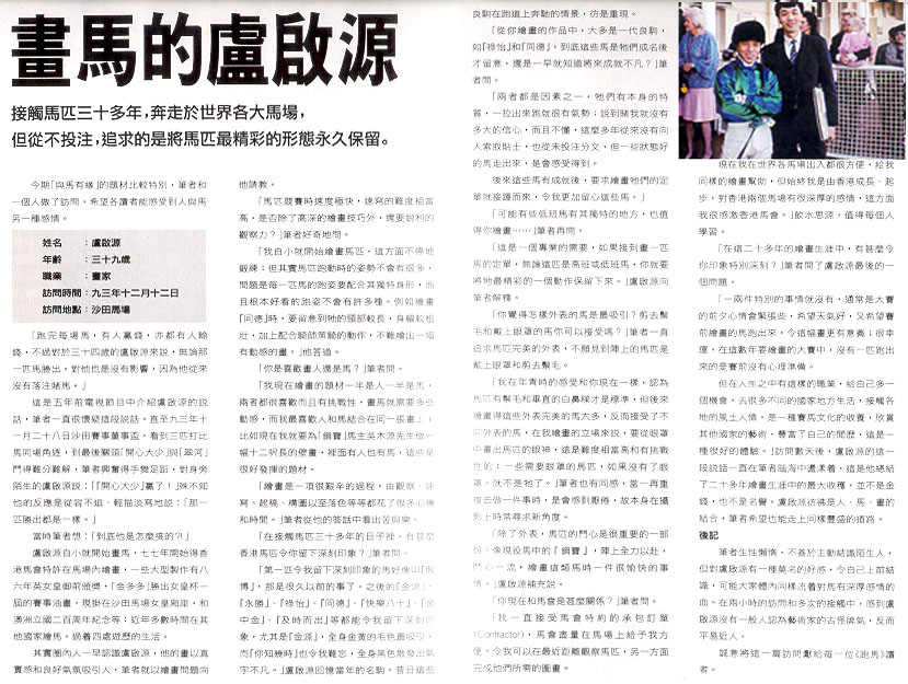 1993-12-12 Equestrian Painter: Circle Lo 畫馬的盧啟源 POA MA MAGAZINE, 《跑雜誌馬》