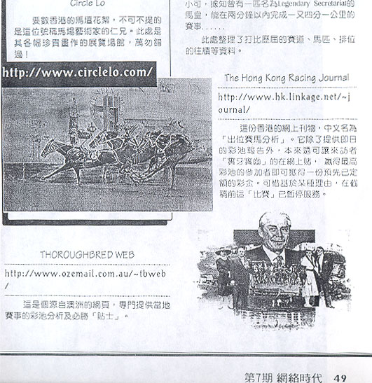 1995-0701 Horse Racing Websites 賽馬網址, INTERNET AGE 《網絡時代》
