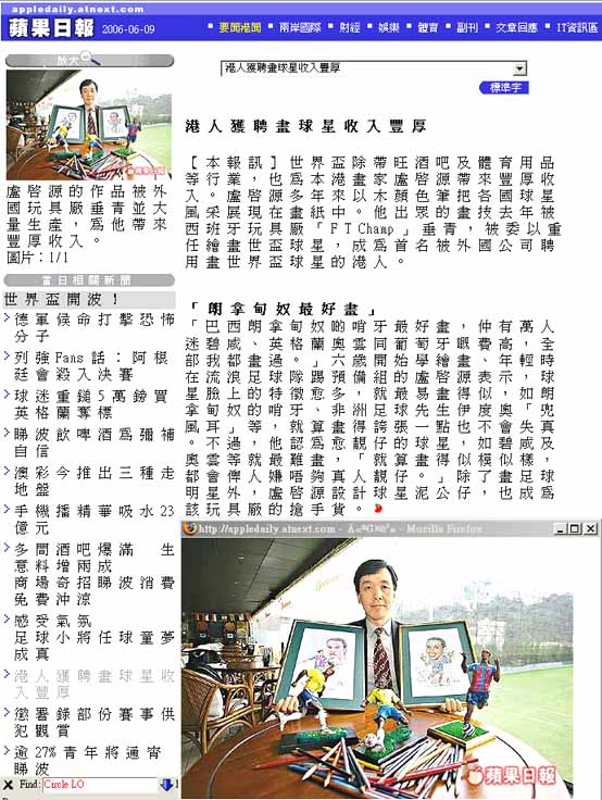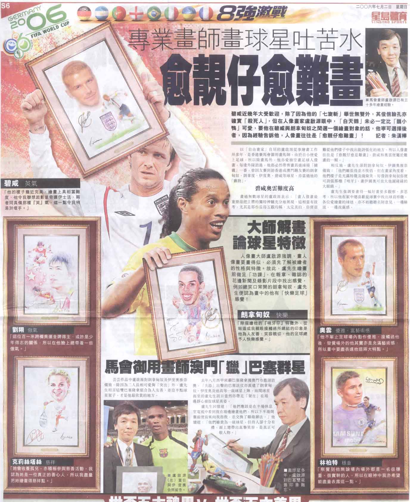 2006-07-02 Professional Painter for Soccer Stars, SING TAO SPORT《星島日報》專業畫師畫球星