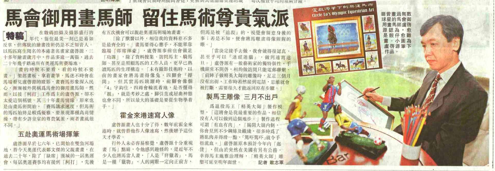 2005-04-26 HKJC Artist Circle LO for Horses 馬會御用畫師盧啟源︰我屬馬!FINANCIAL DAILY《 經濟日報》